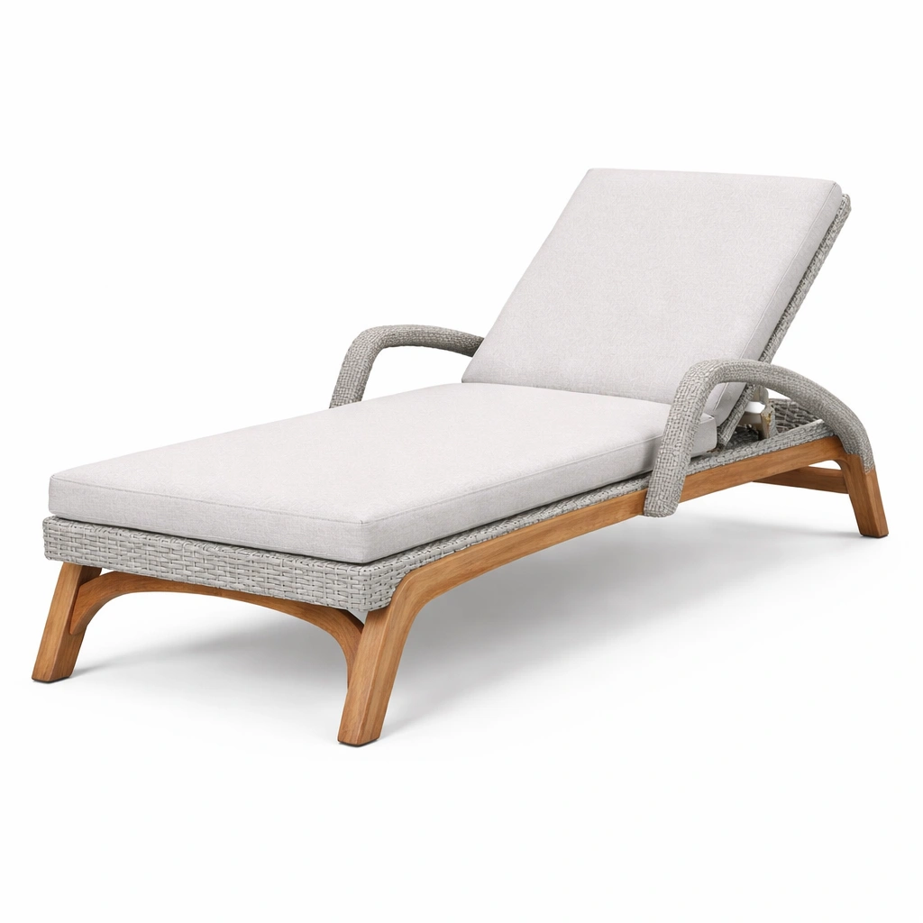 Tumbona de teca con cojines de poliéster
