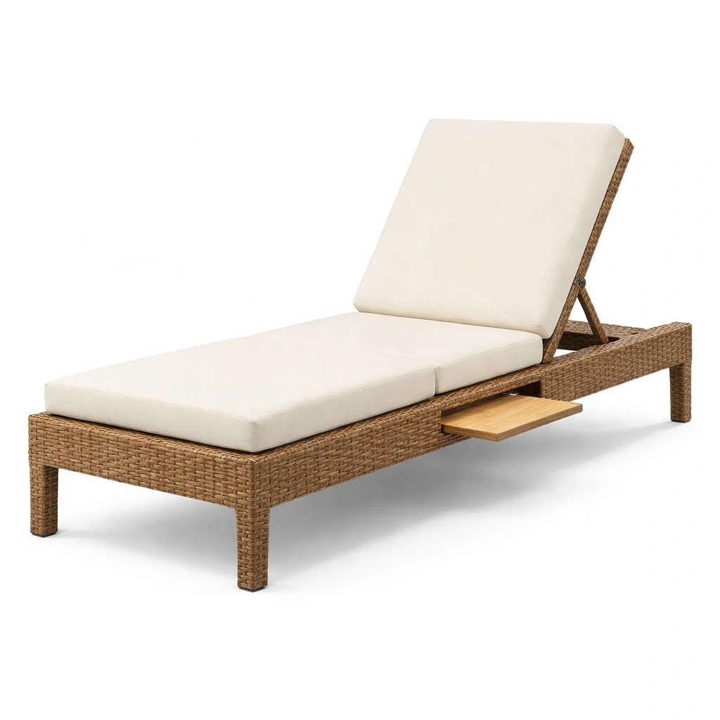 Tumbona de ratán sintético marrón con cojines beige