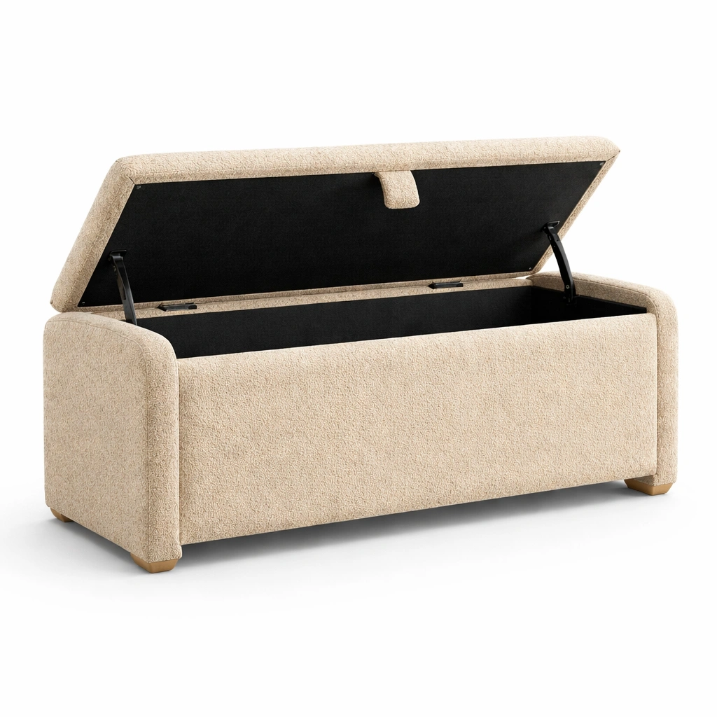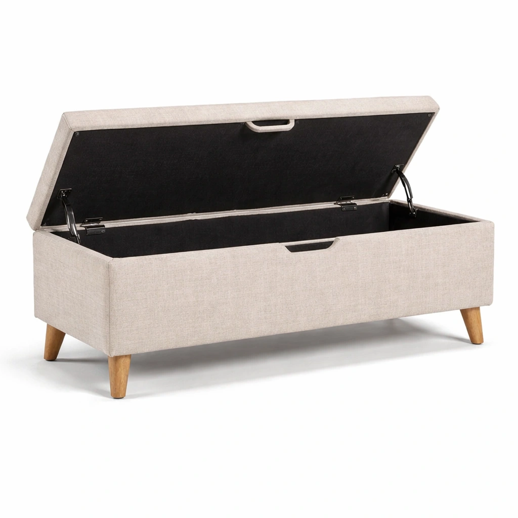 Banco con almacenamiento de tela con patas de madera