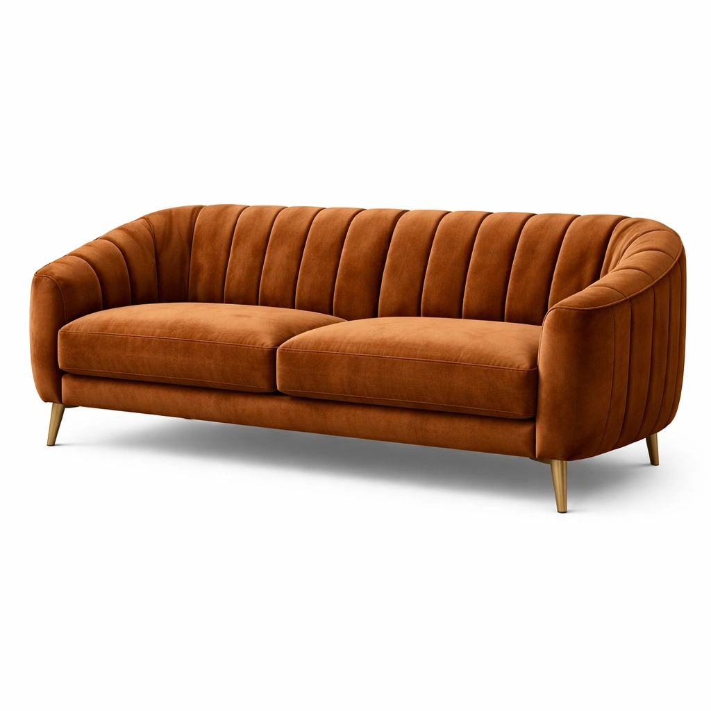 Sofá de dos plazas de terciopelo marrón con patas de metal