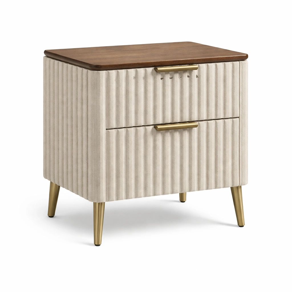 Mesita de noche de madera y latón con dos cajones 60x55x40 cm