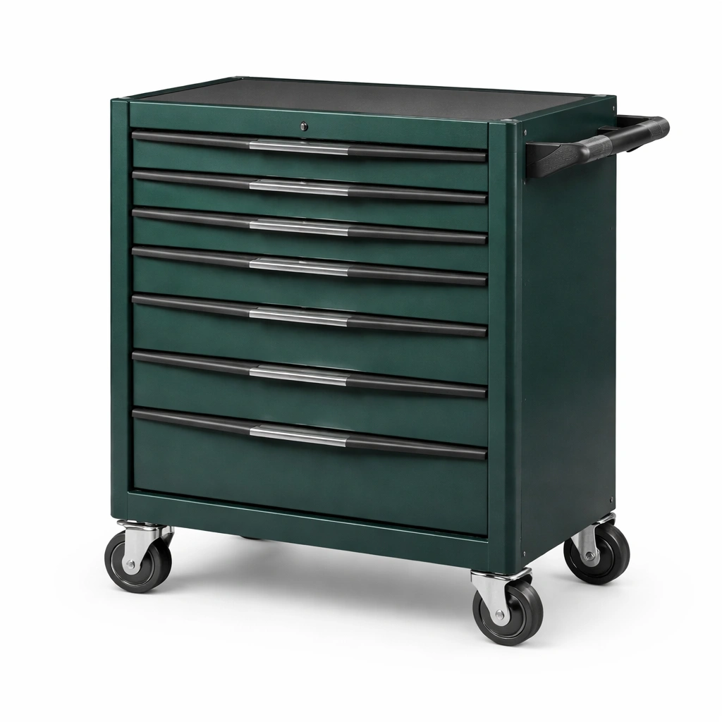 Carro de herramientas de acero verde con 7 cajones